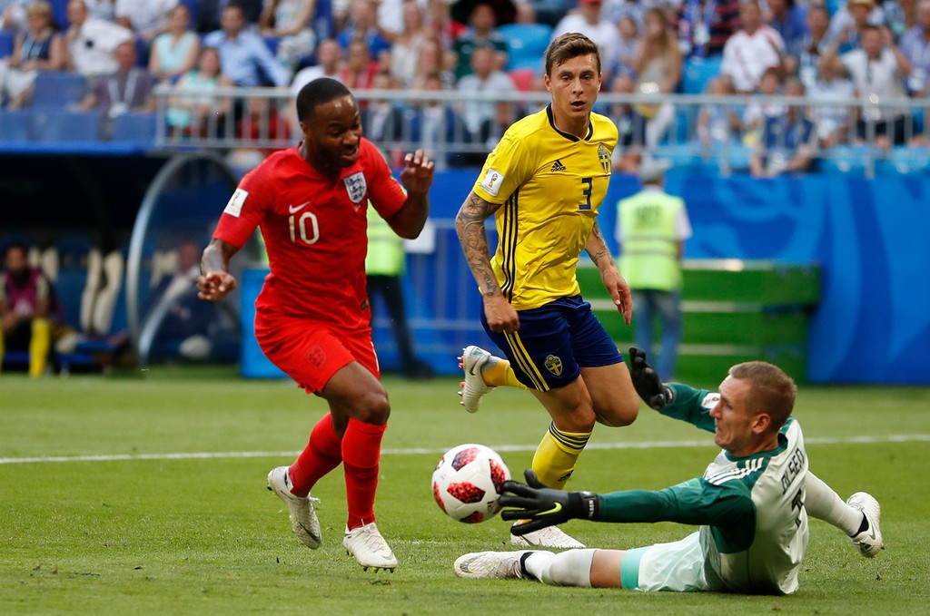 Švédi boli v 47. minúte blízko k vyrovnaniu. V ich vôbec prvej vážnej príležitosti sa ocitol Berg, ktorého hlavičku s gólovými parametrami reflexívne pri ľavej žrdi vytesnil Pickford.