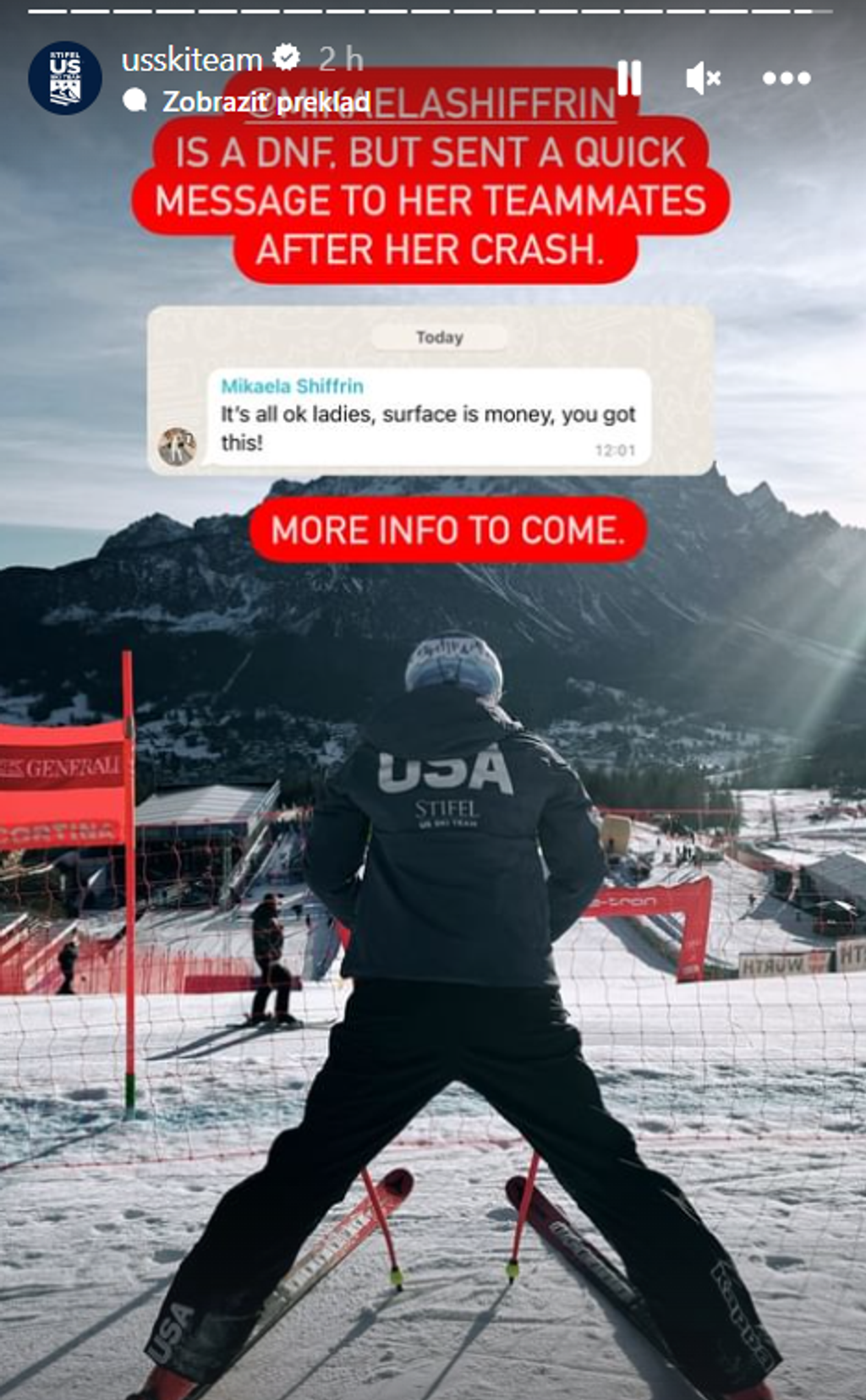 Prostredníctvom tzv. príbehu na profile na Instagrame o tom informoval americký lyžiarsky tím.