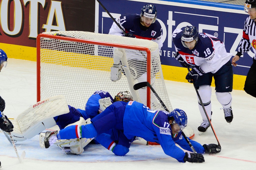 Slovenskí hokejoví reprezentanti zvíťazili v sobotu vo svojom šiestom zápase na MS v bieloruskom Minsku nad Talianskom 4:1 a definitívne si zabezpečili účasť v najvyššej kategórii aj v nasledujúcom roku. Zverenci trénera Vladimíra Vůjteka stále bojujú aj o postup do štvrťfinále. Pred posledným skupinovým duelom majú na konte sedem bodov a patrí im 6. priečka v tabuľke A-skupiny.