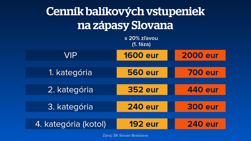 Vstupenky sa totiž predávajú iba v balíčku na všetky štyri domáce zápasy spolu. Ten najlacnejší vyjde so zľavou pre permanentkárov na 192 eur. Cena za VIP kategóriu sa pri zľave vyšplhá na 1 600 eur.