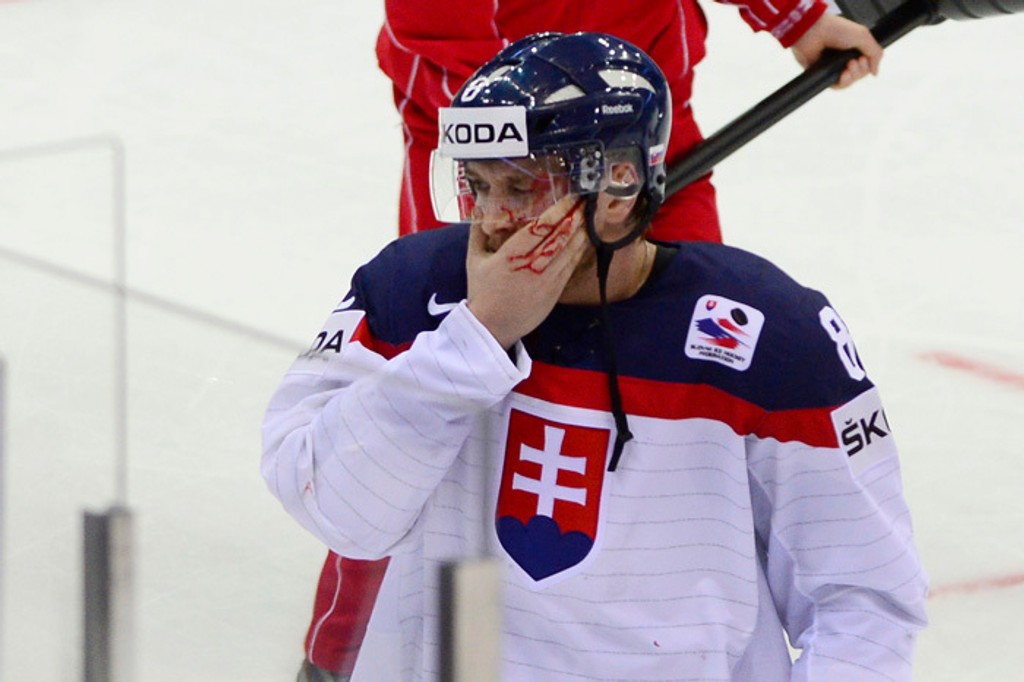 Po strele spoluhráča Juraja Valacha v 32. minúte súboja s Talianskom zostal krídelník najprv ležať na ľade, o chvíľu sa držiac ranu na tvári pomaly presunul do kabíny.