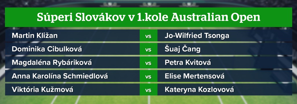 Slovenský tenista Martin Kližan nastúpi v 1. kole dvojhry na grandslamovom turnaji Australian Open proti finalistovi z roku 2008 Francúzovi Jo-Wilfriedovi Tsongovi. Rozhodol o tom štvrtkový žreb v aréne Margaret Courtovej v Melbourne.