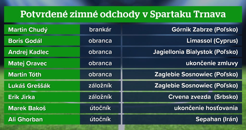 Po skončení jesenných zápasov sa však s odchodmi stabilných členov základnej zostavy roztrhlo vrece. Do Poľska zamierili mladý obranca Andrej Kadlec, skúsená dvojica, záložník Lukáš Greššák a stopér Martin Tóth.