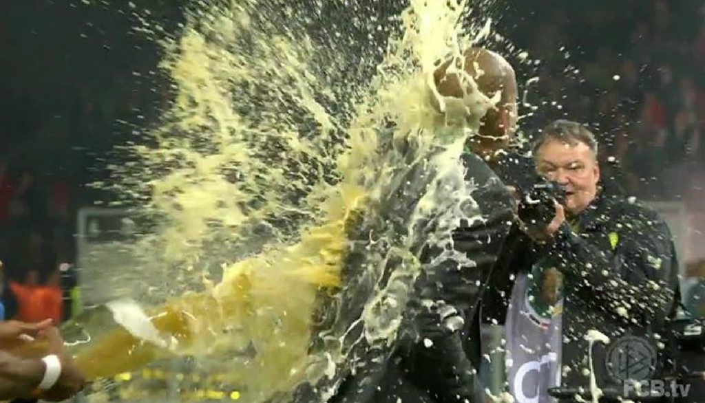 "Nemám rád pivné sprchy, ale patrí to k oslavám Bayernu," poznamenal Guardiola, ktorého poriadne vyoblieval Dante.