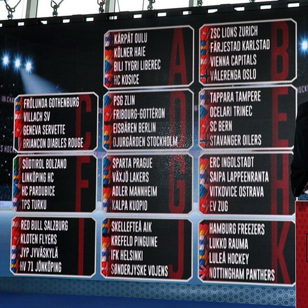 K-skupina: Hamburg Freezers (Nem.), Lukko Rauma (Fín.), Lulea Hockey (Švéd.), Nottingham Panthers (V. Brit.)