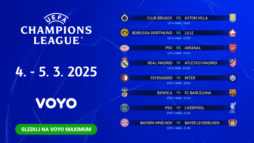 Všetky atraktívne duely Ligy majstrov sledujte na Voyo maximum.
