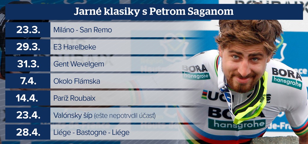 Pre Petra Sagana sa v sobotu začína hlavná časť sezóny - jarné klasiky. Slovák absolvuje takmer celý program s výnimkou prvého marcového týždňa v Belgicku a podujatia Strade Bianche v Taliansku.