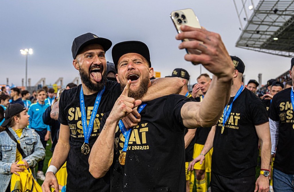 Áno, nezabudnuteľná hlavička ako bodka za famóznou sezónou. Dodnes mám doma tričko s nápisom „titul patrí nezdolaným“, súťaž sme ovládli bez prehry. Na štadióne nás čakalo nádherné ukončenie, trofej sme dvíhali na strane, ako je parkovisko. Vírivky, pivká, v šatni sme oslavovali do noci a potom prešli na strechu Duplexu, rezervovali nám celé poschodie. A mám aj pikošku! Igor Žofčák si vtedy obul najškaredšie ponožky na svete (smiech).