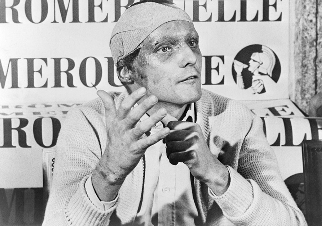 Lauda utrpel ťažké popáleniny hlavy a vážne poškodenie pľúc. Počas liečby podstúpil bolestivé procedúry, lekári mu z pľúc vysávali odumreté tkanivo. Aj napriek vážnym zraneniam sa po 42 dňoch neoblomný Rakúšan vrátil na okruhy s túžbou obhájiť titul majstra sveta z roku 1975.