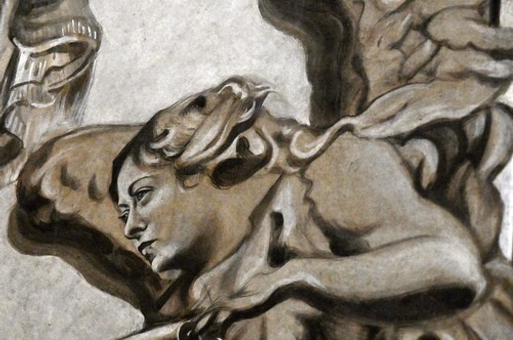Nad bustou sa nachádza freska zobrazujúca dvoch anjelov, ktorá pred nedávnou rekonštrukciou nebola veľmi známa. Po obnove však jeden z anjelov podľa mnohých pozorovateľov nadobudol výraznú podobu s premiérkou Meloniovou, líderkou krajne pravicovej strany Bratia Talianska (FdI).
