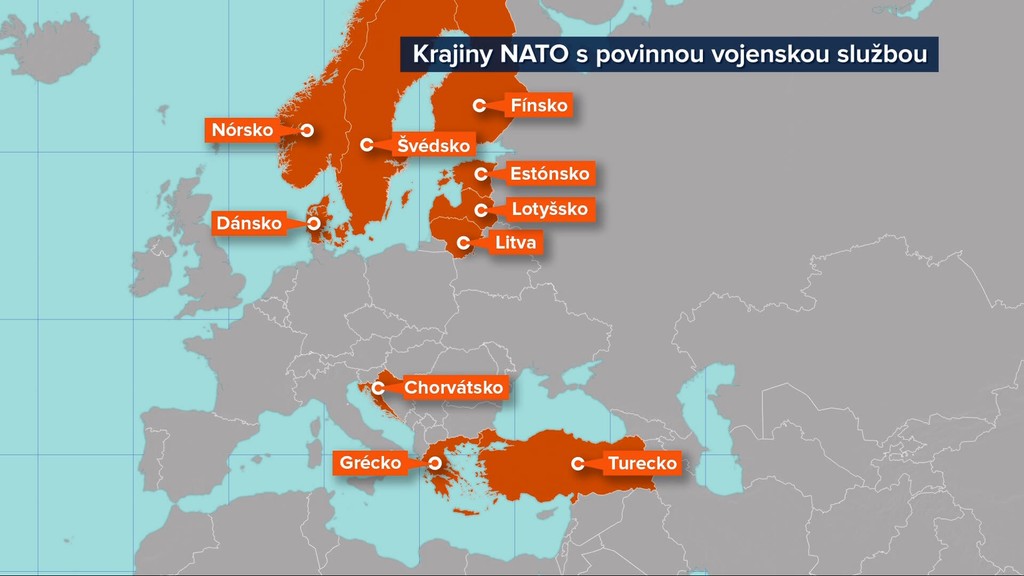 Z členských štátov NATO má povinnú vojenčinu približne tretina krajín; spomedzi európskych je to spolu s Chorvátskom desať krajín.