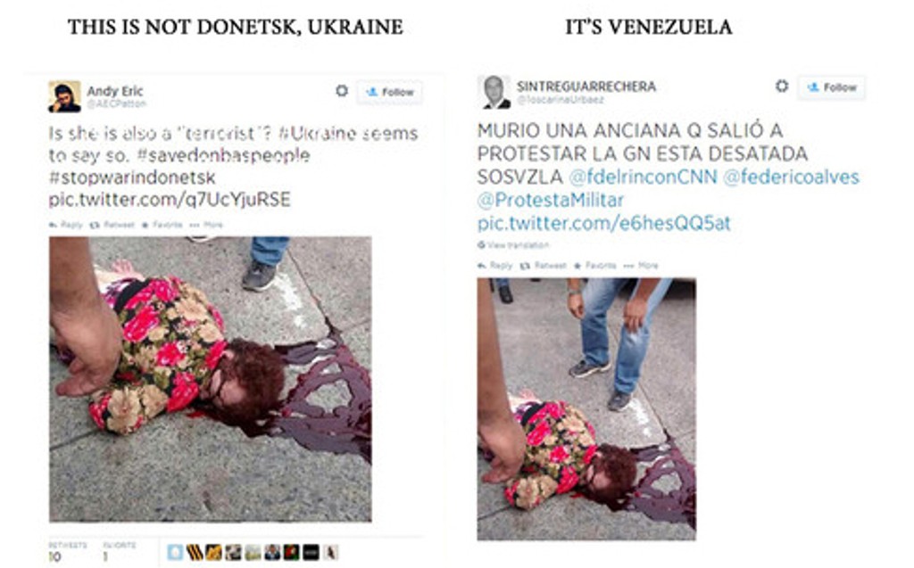 Odstrašujúca fotografia sa objavila aj na sociálnych sieťach. Pripisovali ju k vraždám v Donecku. Je to však zavraždená žena vo Venezuele.