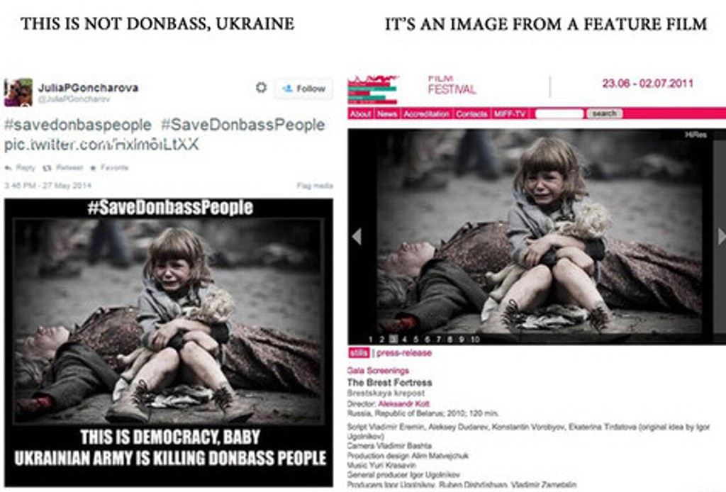 Na fotografii mali zachytiť ukrajinské dieťa v meste Donbass, ktoré sa stratilo. V skutočnosti je to len obrázok z filmu.