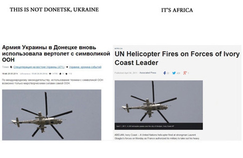 Fotografia vrtuľníka OSN v Afrike. Údajne vrtuľník OSN v Donecku.