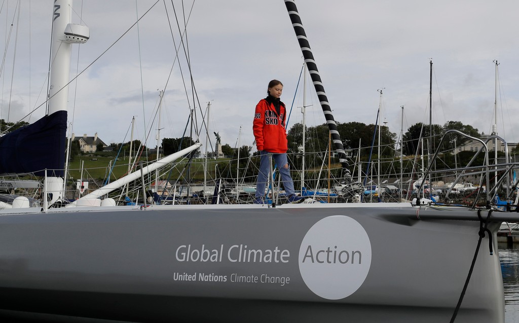 Šestnásťročná Thunbergová odmieta cestovať lietadlom, ktoré produkuje emisie oxidu uhličitého a svojou plavbou tak chce demonštrovať ekologické správanie. Mladá aktivistka chce týmto spôsobom dosiahnuť, aby jej cesta do USA nezanechala žiadnu uhlíkovú stopu.