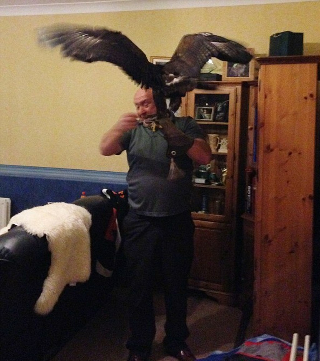 Wendy Morrell sa práve usadil, aby si pozrel tenisové finále Roland Garros, keď v tom mu do obývačky, cez otvorené balkónové dvere, vletel pol metra vysoký dravec. Orol si sadol na skriňu a vyzeral spokojne.