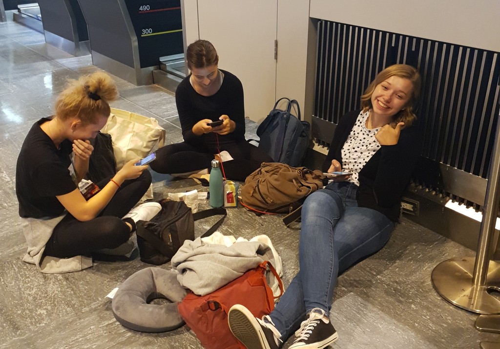 Spojili sme sa s Barborkou Petrášovou, ktorá je členkou súboru a opísala nám momentálnu situáciu. Po deviatich hodinách cesty v autobuse už aspoň tri hodiny čakajú na letisku. Lety zrušili a snažia sa nájsť náhradný let.