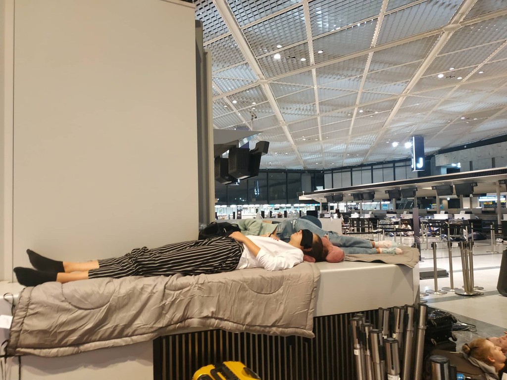 V priestoroch letiska muselo stráviť noc celkovo 16 900 ľudí, ktorým letiskový personál rozdával jedlo, vodu a deky. Študenti z Trnavy spali, kde sa dalo. Niektorí si obsadili sedačky, iní spali na zemi.