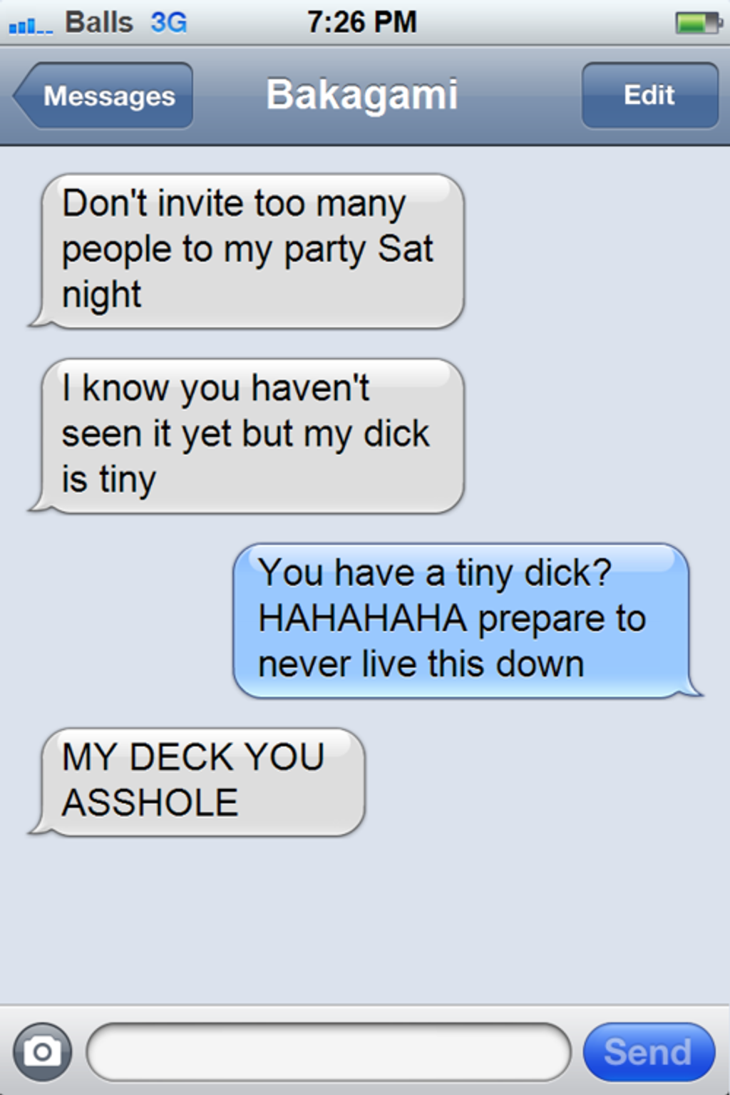 Ako môžu vyzerať inštrukcie k blížiacej a párty? Muž chcel varovať kamaráta, aby k nemu nepozýval príliš veľa ľudí, pretože má malý byt. Namiesto slova deck ale napísal dick (penis).