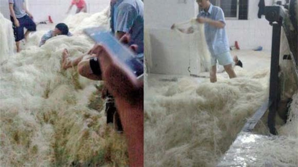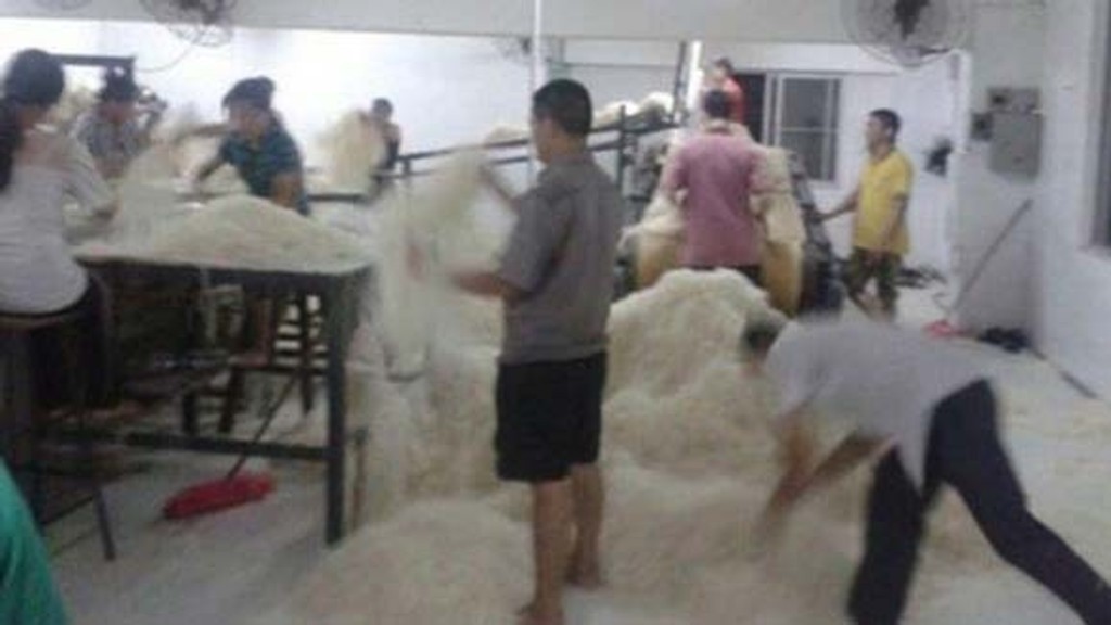 Fotografie zverejnil jeden zo zamestnancov továrne v meste Dongguan. Sú na nich zachytení jeho kolegovia, ako porušujú všetky hygienické predpisy. Rezance chytajú holými rukami, stúpajú po nich bosí a dokonca sa v nich váľajú ako v posteli. Takéto rezance potom balia a posielajú zákazníkom.