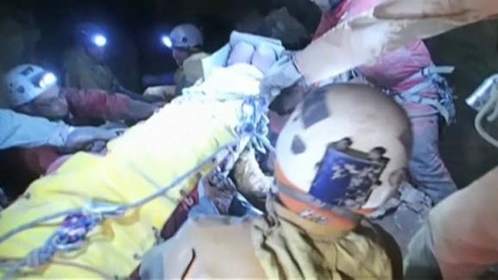 Video nakrútil jeden zo záchranárov pomocou kamery pripevnej na jeho helme. Cesta z jaskyne v Berchtesgadenských Alpách je náročná a pre prevoz zraneného muža aj pomalá. Uviazol totiž v hĺbke 1 000 metrov.
