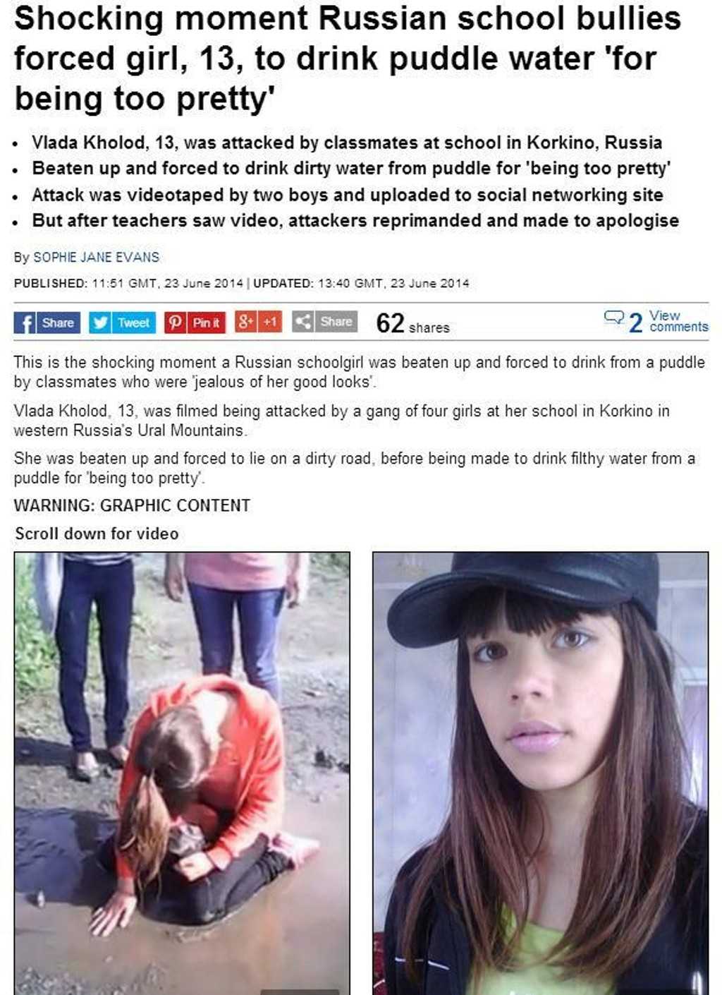 Mladé Rusky vedia byť poriadne kruté. Dôkazom toho je video, ktoré sa objavilo na YouTube. Zverejnili ho spolužiaci 13-ročnej Vlady, ktorú šikanovali pre jej krásu.