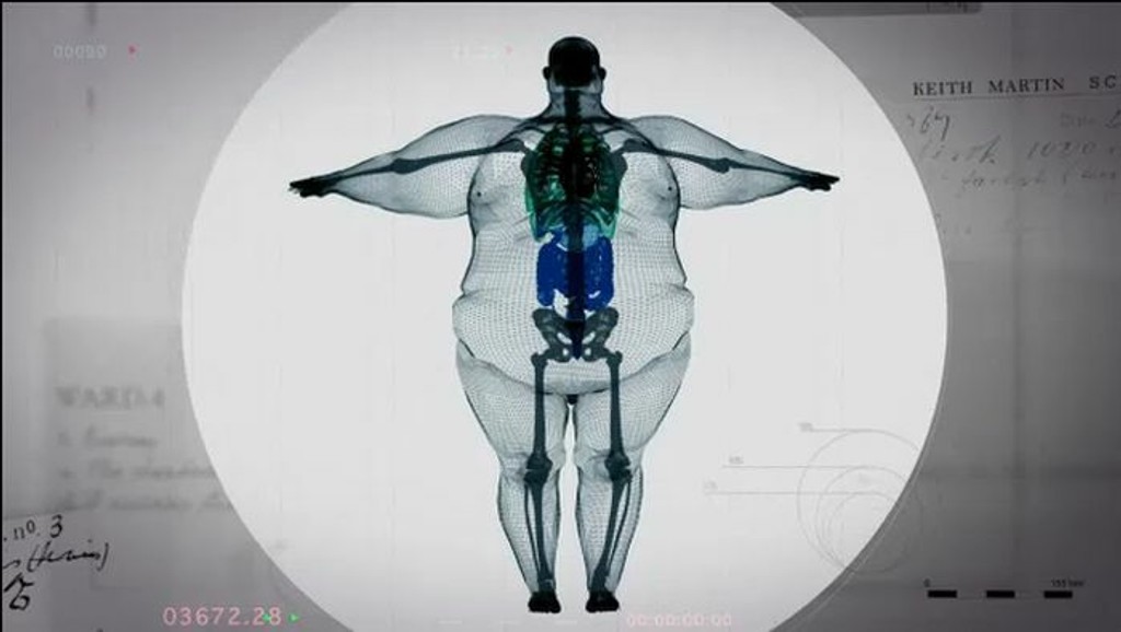 Brit Keith Martin (42) váži vyše 400 kilogramov. Patrí k najtučnejším ľuďom sveta. Röntgenové zariadenie odhalilo, aké množstvo mäsa a tuku musí jeho kostra každodenne uniesť.