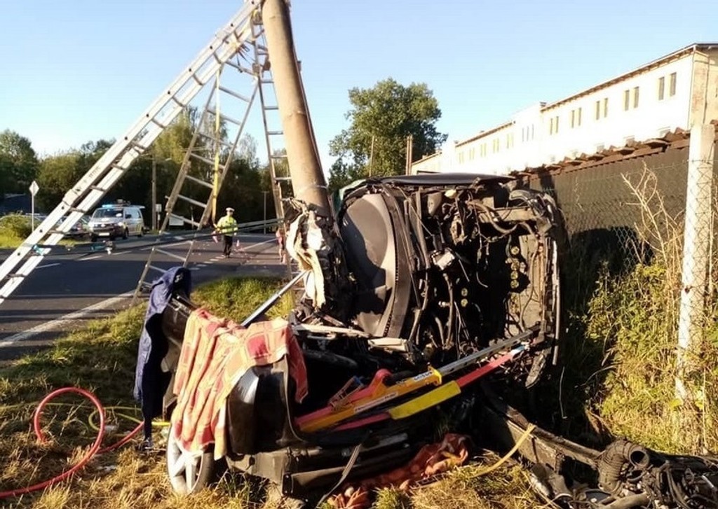 „Po príjazde na miesto sme zistili, že vozidlo sa doslova obmotalo okolo stĺpa elektrického vedenia, pričom hrozil aj jeho pád. Jednotky ihneď začali s vyslobodzovacími prácami a podopreli nahnutý stĺp, aby neohrozoval zasahujúcich," informuje Zbor dobrovoľných hasičov Rumburk.