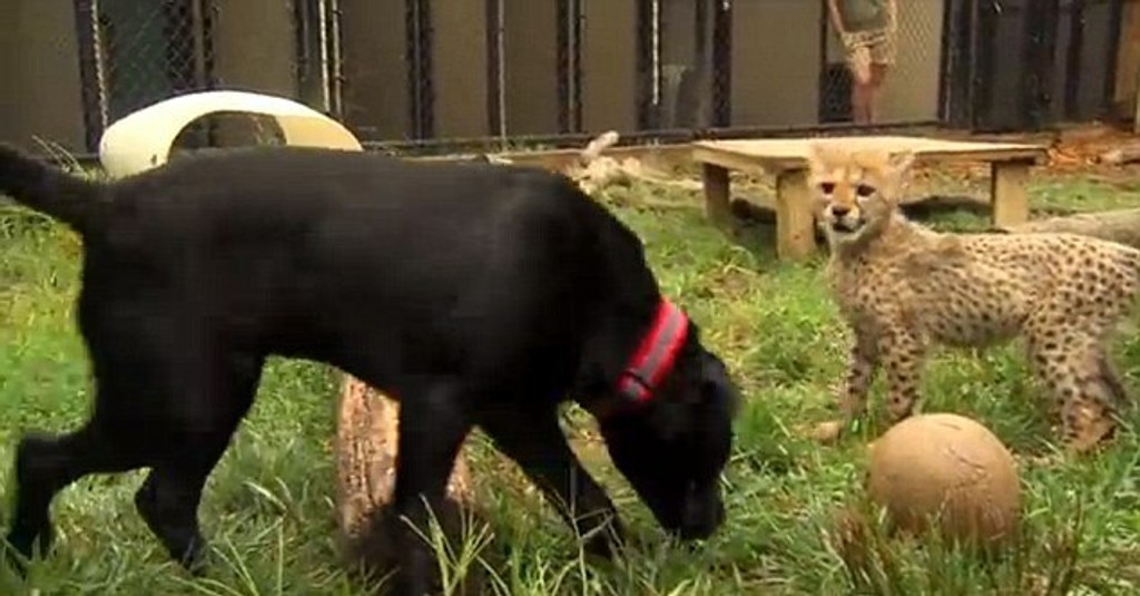 V prirodzenom prostredí by si zrejme išli po krku, no v zoo sú z nich nerozluční priatelia. Labrador Max vyrastal s mláďaťom geparda Savannah v spoločných priestoroch. Tak si na seba zvykli, že im nerobí problém sa spolu aj zahrať.