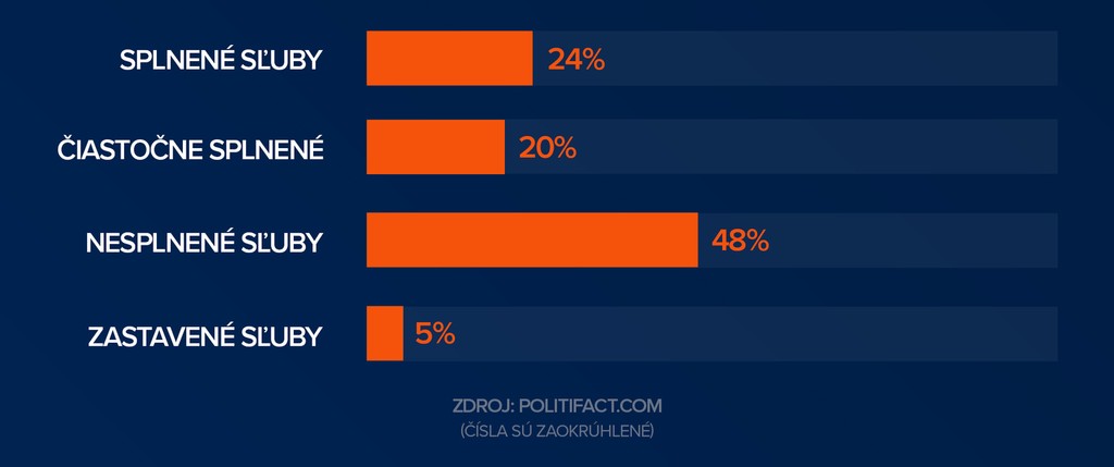Portál Politifact sa zameral na 100 sľubov, ktoré Donald Trump deklaroval počas prezidentskej kampane v roku 2016.