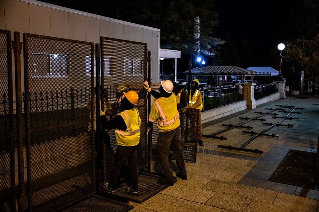 17.24 - Pred volebným dňom začali okolo Bieleho domu stavať provizórne oplotenie ako prevencia pred možnými neprístojnosťami tesne po vyhlásení výsledkov alebo v nasledujúcich dňoch.