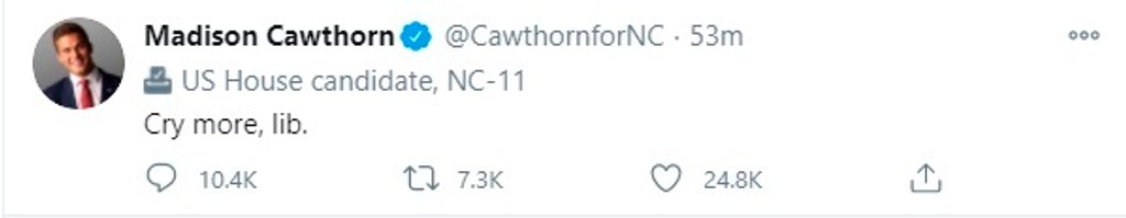 4.23 - Republikán Madison Cawthorne (25) zo štátu Severná Karolína sa stal najmladším kongresmanom v histórii. Svoje víťazstvo oslávil provokatívnym statusom na Twitteri: "Len si poplačte, liberáli."