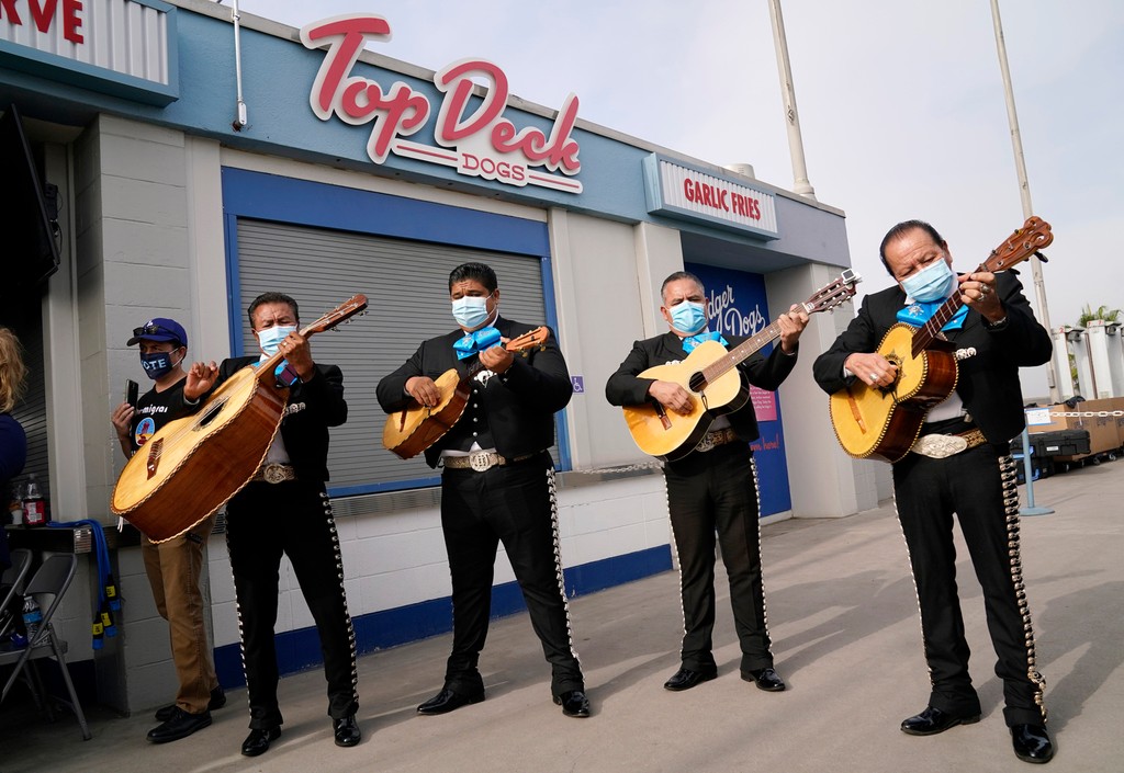 20.49 - Ľudom v rade pred volebnou miestnosťou v kalifornskom Los Angeles spríjemňuje čakanie skupina hudobníkov mariachi.