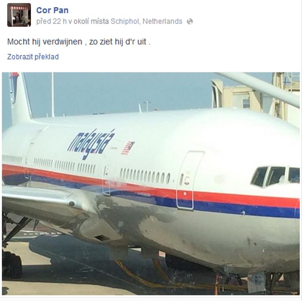 Jeden z pasažierov malajzijského lietadla, ktoré sa vo štvrtok v popoludňajších hodinách zrútilo v oblasti ukrajinského Donecka, dal na Facebook fotografiu lietadla s vtipným popisom. To ale netušil, že v ňom príde o život.