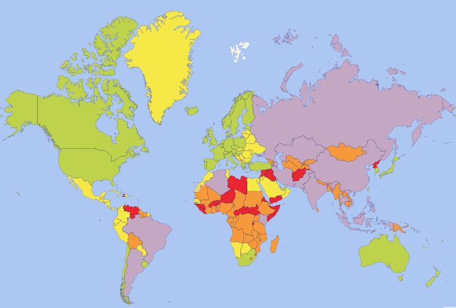 Organizácia každoročne zverejňuje interaktívnu mapu s niekoľkými stupňami bezpečnosti, do ktorých zaradí krajiny podľa spomínaných kritérií. Pre budúci rok sa medzi najbezpečnejšie krajiny sveta so zanedbateľným stupňom rizika dostali Grónsko, Island, Nórsko, Fínsko, Dánsko, Luxembursko, Švajčiarsko, Slovinsko, ako aj ostrovné krajiny Kapverdy, Anguilla a Turks a Caicos. Slovensko sa v tomto prípade radí medzi krajiny s nízkym bezpečnostným rizikom.