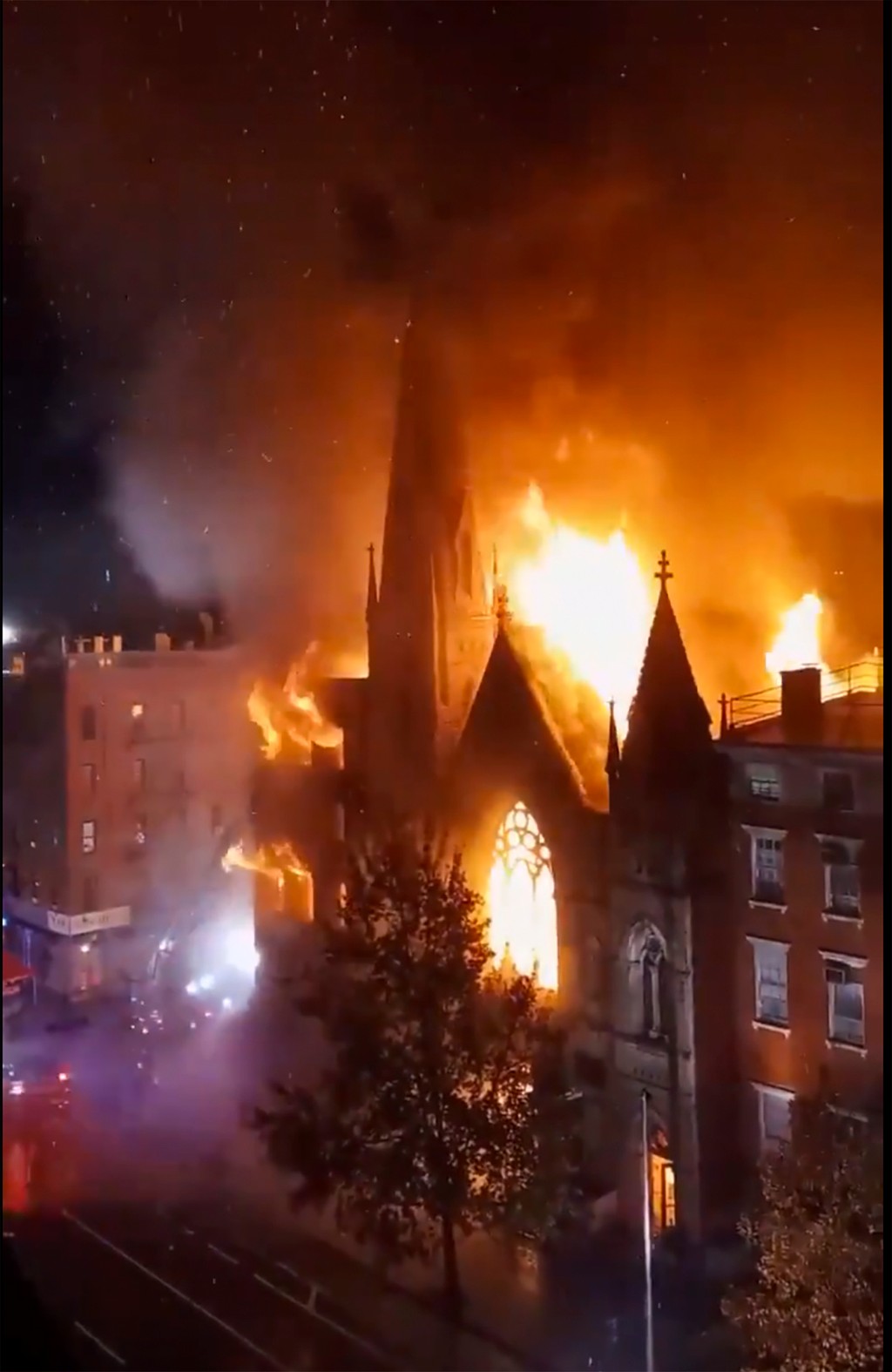 Požiar sa rozšíril na kostol Middle Collegiate Church okolo piatej ráno.
