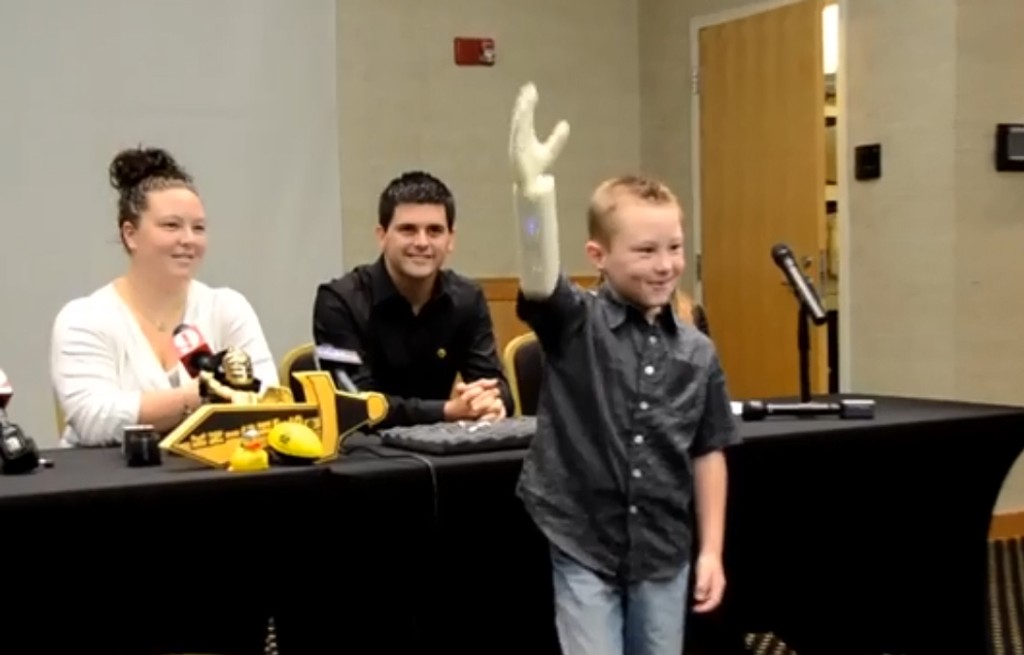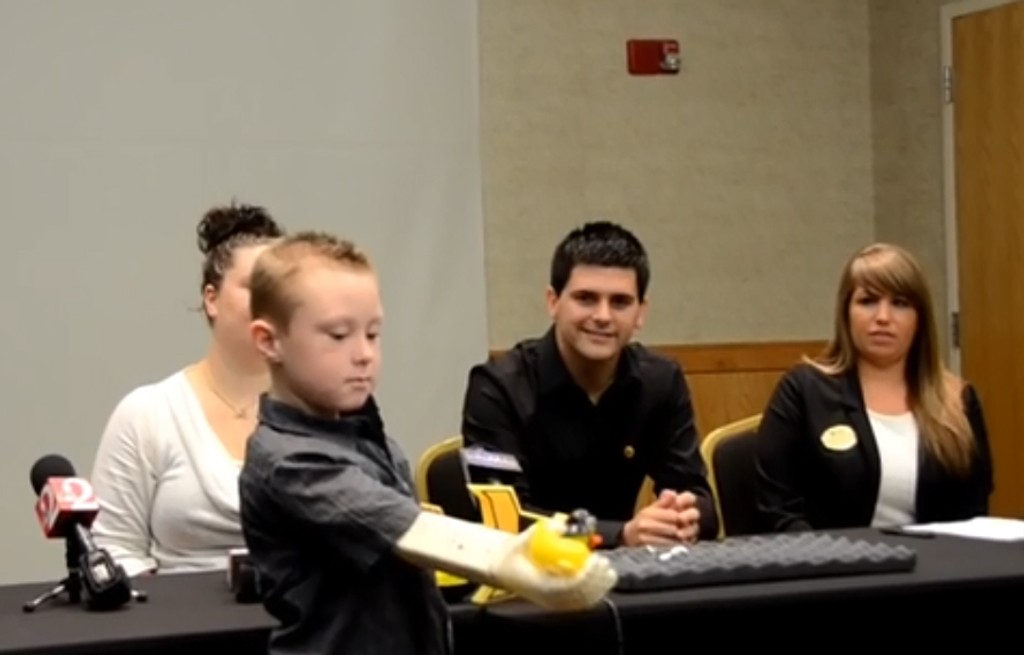 Šesťročný americký chlapec, ktorému od narodenia chýba jedna horná končatina, po prvý raz objal matku oboma rukami až vďaka robotickej protéze z 3D tlačiarne. Alexovi Pringovi nechcela poisťovňa jeho rodiny preplácať umelé náhrady ruky, pretože rastie rýchlo a museli by mu ich často meniť.