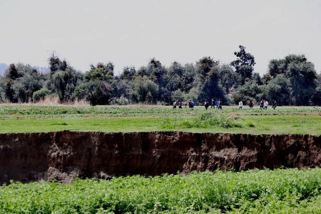 Zakrátko však zistili, že v tesnej blízkosti ich domu sa prepadla veľká časť poľa. Mohutné prepadlisko plné vody malo do nedele šírku 30 metrov.