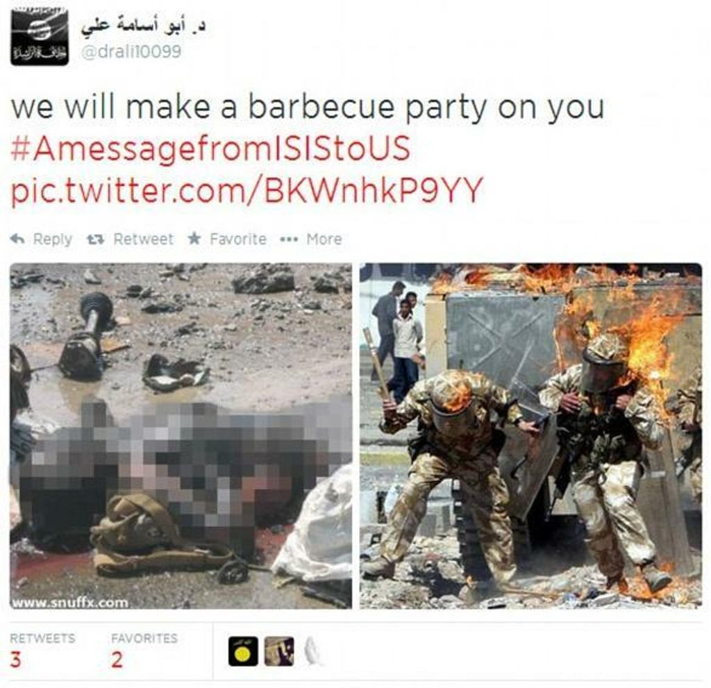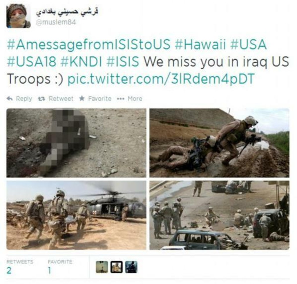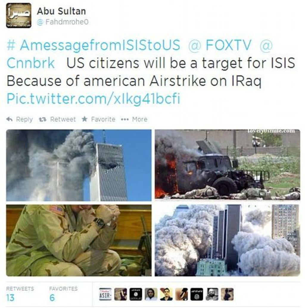 „Toto je odkaz pre každého obyvateľa Ameriky. Ste terčom každého Moslima na svete, nech ste už kdekoľvek," píše sa na Twittri. USA má na mnohých miestach Iraku svojich diplomatov a poradcov a urobia všetko, čo je potrebné, na ich ochranu, zdôraznil Obama.