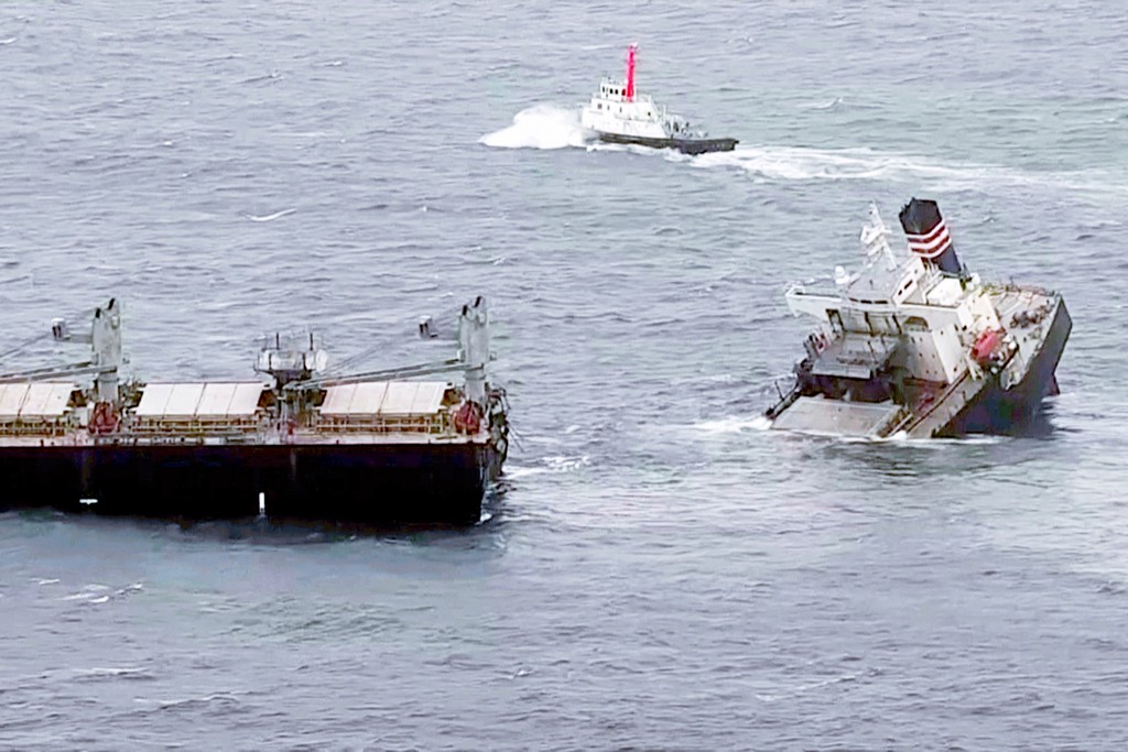 Vo štvrtok ráno miestneho času sa však plavidlo rozlomilo na dve polovice. Z lode vytieklo palivo, ktoré na hladine mora vytvorilo škvrnu dlhú päť kilometrov. Japonská pobrežná stráž podnikla podľa hovorcu všetky potrebné úkony. Obe časti plavidla zatiaľ plávajú na hladine.