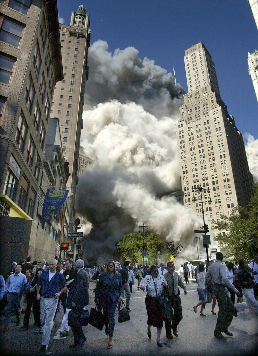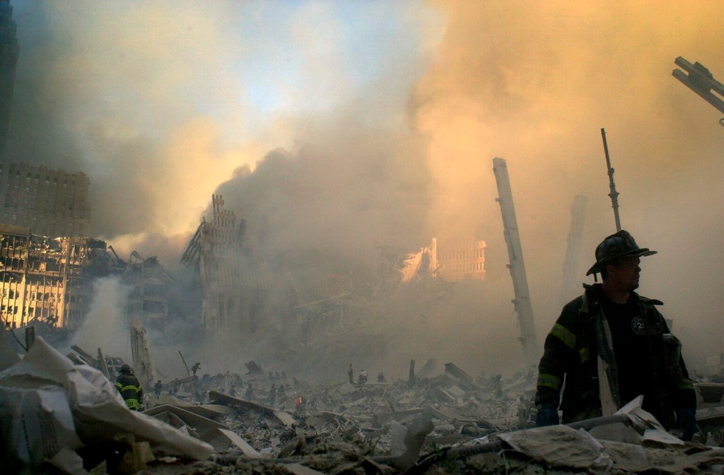 Ráno 11. septembra 2001 o 8.45 h miestneho času narazilo lietadlo Boeing 767 americkej leteckej spoločnosti do severnej budovy WTC v New Yorku. Následne, 18 minút po prvom stroji, narazil do južnej budovy WTC druhý Boeing 767. Štyristo metrov vysoké dvojičky sa po nárazoch lietadiel zrútili, pričom ich pád zničil ďalších 50 budov. Obrázky padajúcich mrakodrapov, obrovského oblaku popola i prachu, ktorý sa valil ulicami New Yorku, a pred touto pohromou utekajúcich ľudí vzápätí obleteli celý svet.