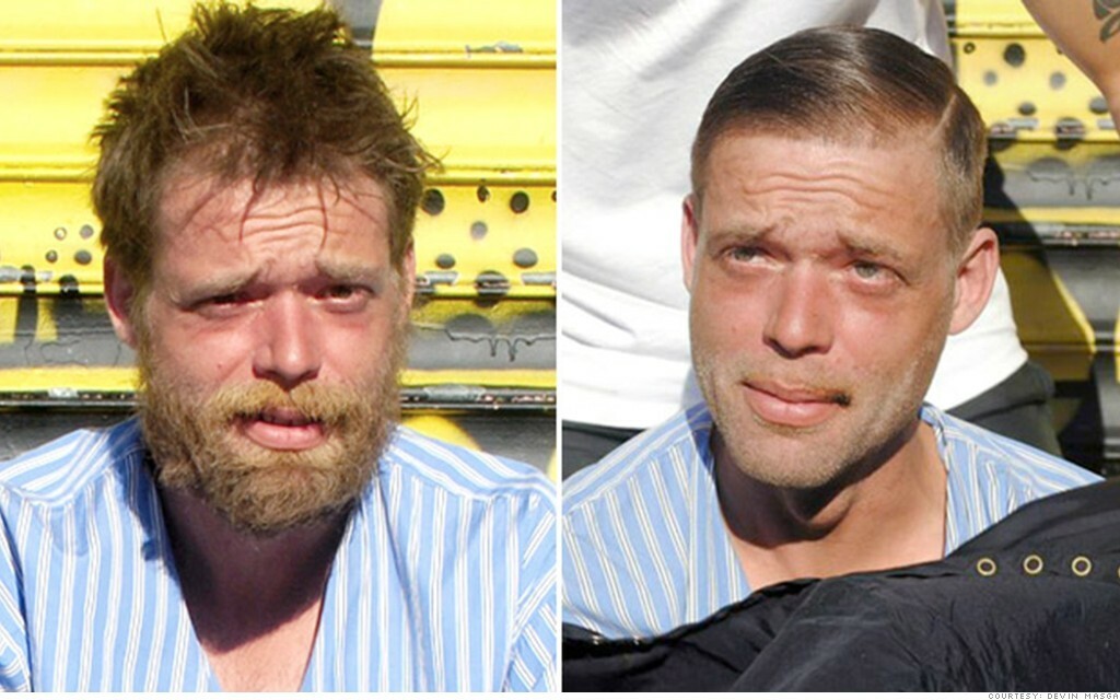 Jeho prácu s bezdomovcami zachytáva fotograf Devin Masga a pridáva snímky na Instagram. Niektoré premeny skutočne vyrážajú dych.
