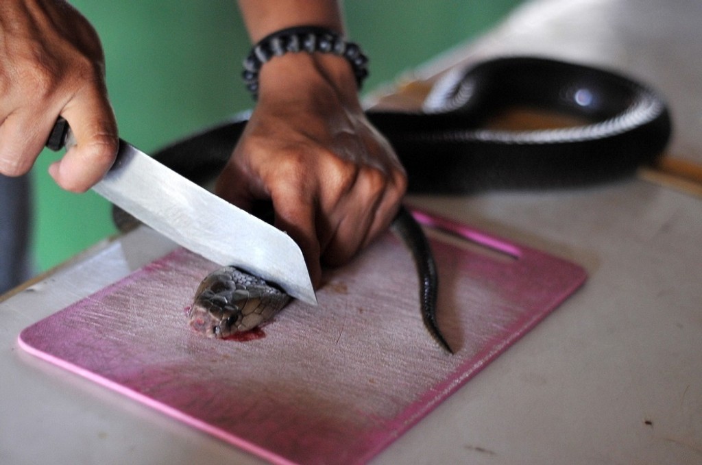 Hostia v reštaurácii počuli v jednej chvíli zúfalý výkrik z kuchyne. Hlava hada, ktorá už 20 minút ležala oddelená na kuchynskej doske, zaútočila.