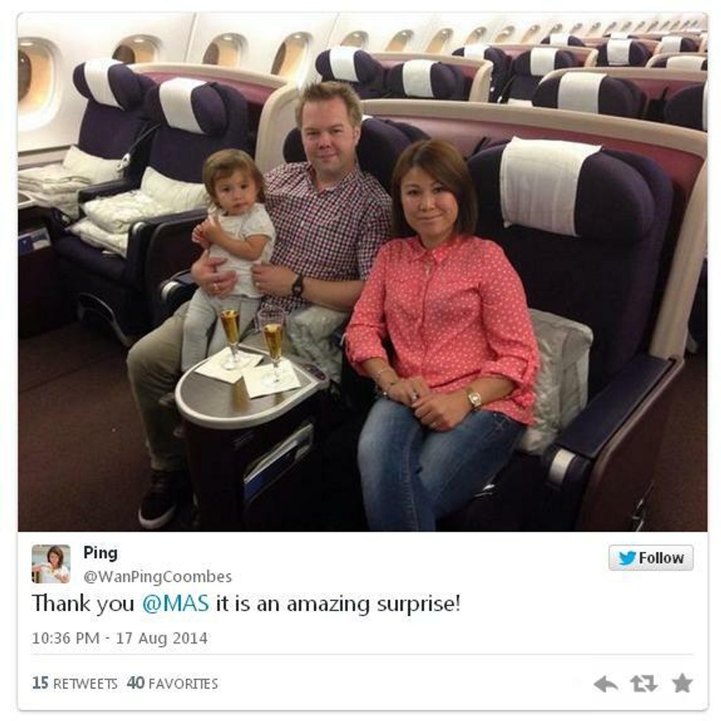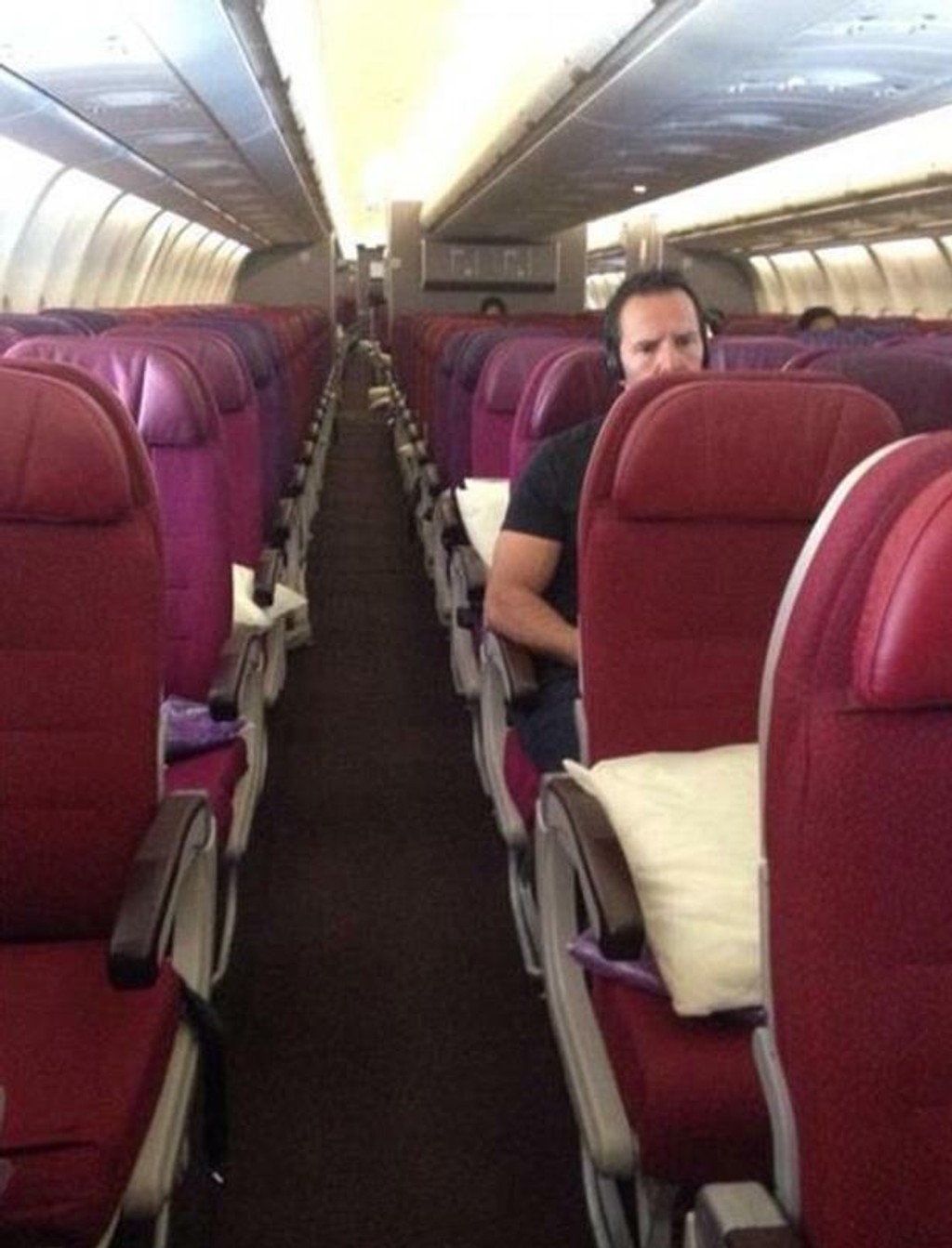 Fotografia s mužom a ďalšími tromi cestujúcimi, ktorým v pozadí spoza sedadiel trčia hlavy, vznikla tesne pred odletom z Austrálie. Na ďalšej je vidieť rodinu s malým dieťaťom, ktorá na Twittri ďakovala za prekvapenie. Prázdne sedadlá zrejme takisto nečakali.