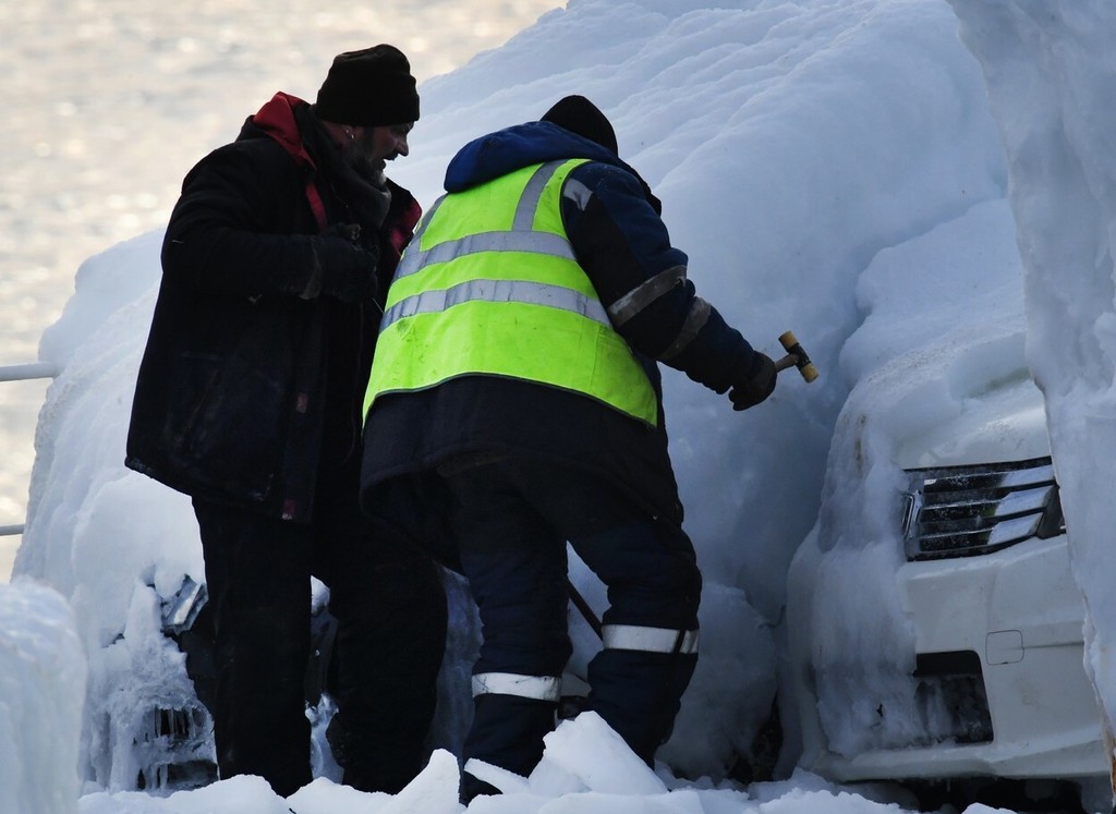Mnohé z vozidiel boli pokryté takou hrubou vrstvou ľadu, že nebolo možné ich rozpoznať.