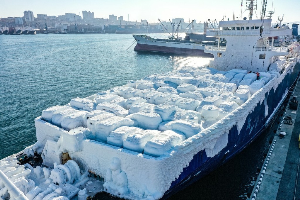 Do ruského prístavu Vladivostok na Ďalekom východe koncom roka dorazila loď pokrytá silnou vrstvou slaného ľadu. Zimná plavba cez Japonské more sa poriadne podpísala pod stav nákladu, ktorý tvoria prevažne autá z Japonska. Budúci majitelia týchto vozidiel tak môžu zažiť nepríjemné prekvapenie.