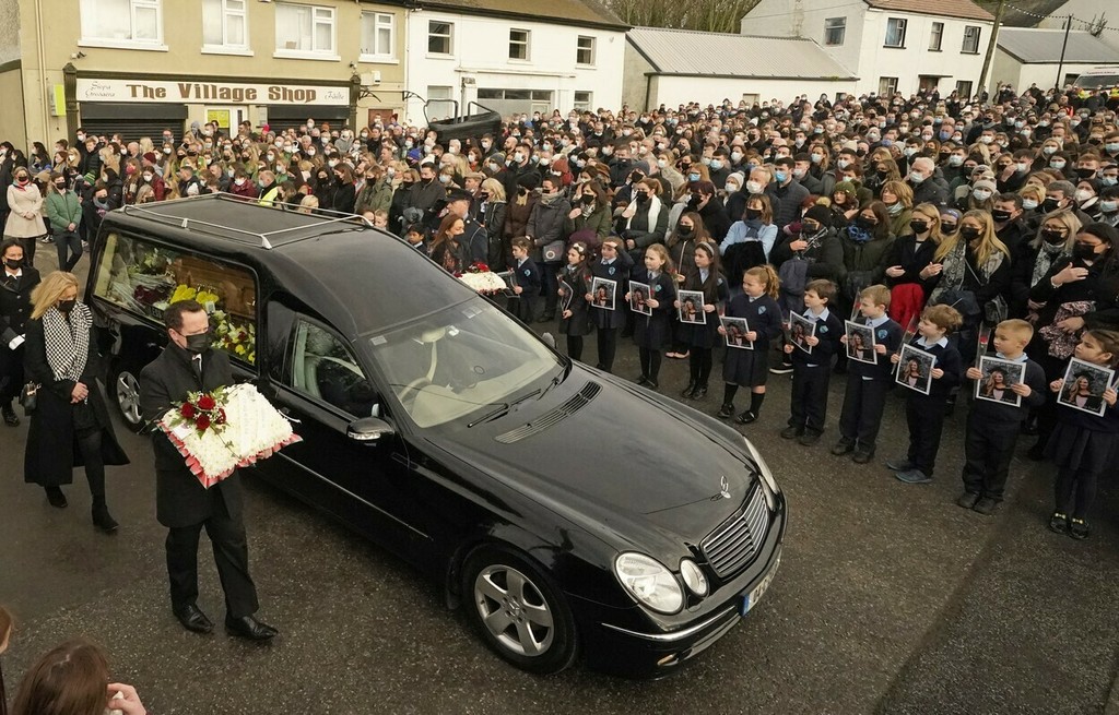 Írsky premiér Micheál Martin a prezident Michael Higgins boli tiež v obrovských davoch ľudí, ktorí sa zišli na pohreb v Mountboluse.