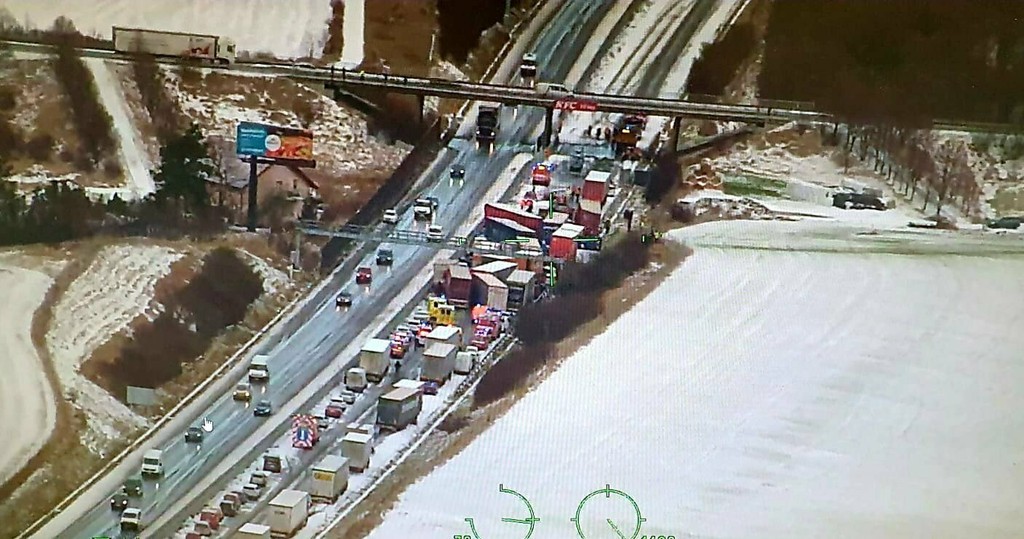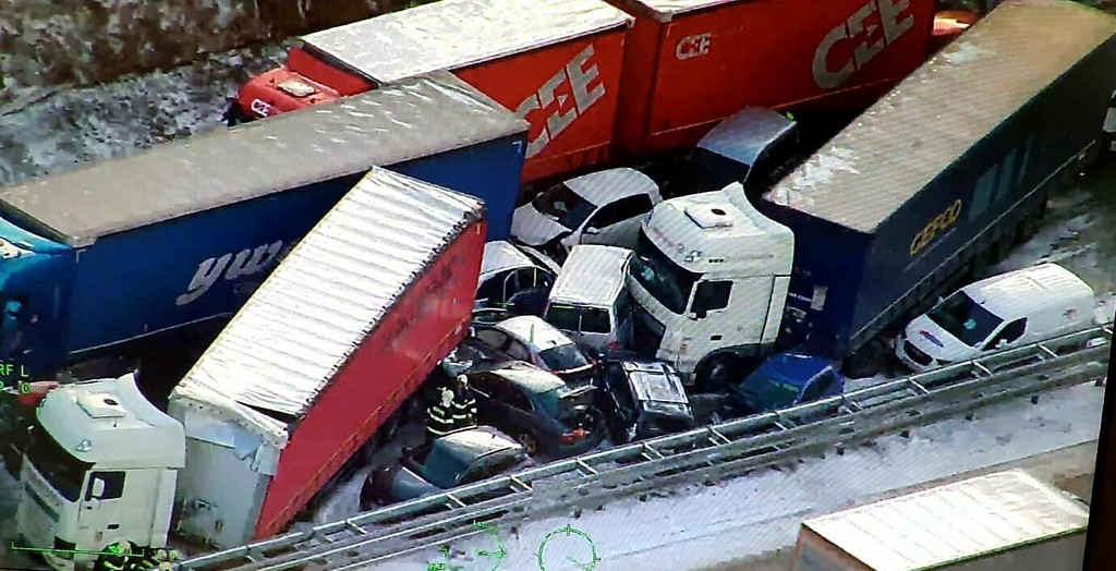 Podľa informácií sa tam vo štvrtok o 11. hodine predpoludním zrazilo 10 nákladných a 15 osobných áut, polícia následne uviedla, že šlo až o 40 vozidiel.
