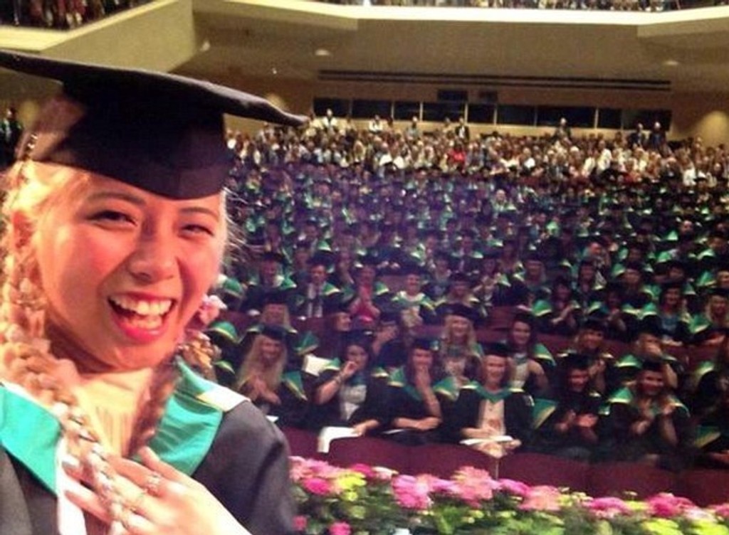 „Mala som v pláne odfotiť sa na javisku so všetkými absolventmi, pretože sme na univerzite mali súťaž o najlepšiu univerzitnú fotku," spovedá sa Terri, pôvodom z Hong Kongu.