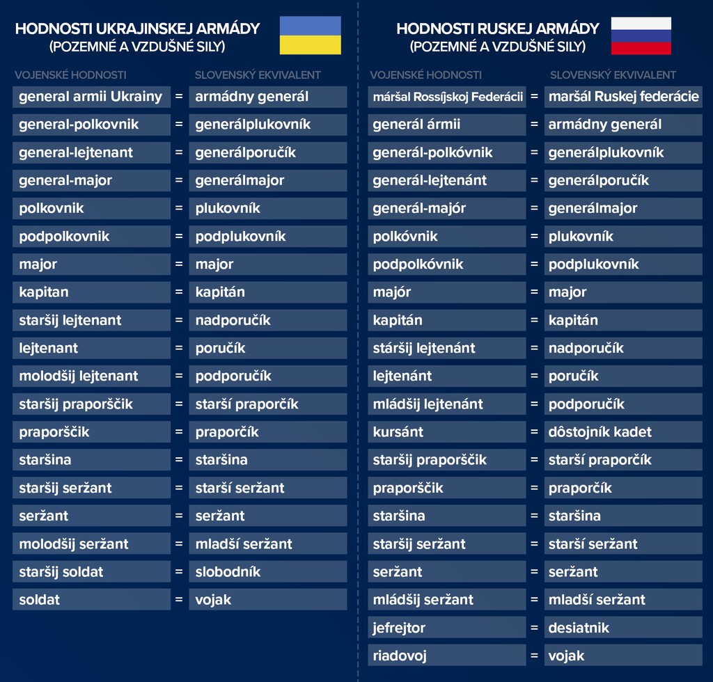 Hierarchiu ruskej armády pritom Kyjev veľmi dobre pozná. Veľmi podobnú štruktúru má totiž aj ukrajinská armáda.